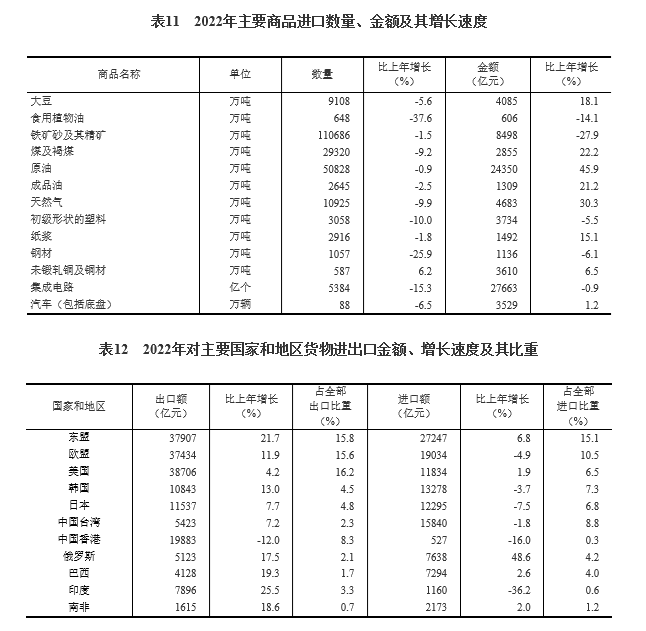 全年货物进出口总额420678亿元,比上年增长7.7%。其中,出口239654亿元,增长10.5%;进口181024亿元,增长4.3%。货物进出口顺差58630亿元,比上年增加15330亿元。对“一带一路”沿线国家进出口总额138339亿元,比上年增长19.4%。其中,出口78877亿元,增长20.0%;进口59461亿元,增长18.7%。对《区域全面经济伙伴关系协定》(RCEP)其他成员国进出口额129499亿元,比上年增长7.5%。