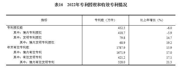 全年研究与试验发展(R&D)经费支出30870亿元,比上年增长10.4%,与国内生产总值之比为2.55%,其中基础研究经费1951亿元。国家自然科学基金共资助5.19万个项目。截至年末,正在运行的国家重点实验室533个,纳入新序列管理的国家工程研究中心191个,国家企业技术中心1601家,大众创业万众创新示范基地212家。国家科技成果转化引导基金累计设立36支子基金,资金总规模624亿元。国家级科技企业孵化器1425家,国家备案众创空间2441家。全年授予专利权432.3万件,比上年下降6.0%;PCT专利申请受理量7.4万件。截至年末,有效专利1787.9万件,其中境内有效发明专利328.0万件。每万人口高价值发明专利拥有量9.4件。全年商标注册617.7万件,比上年下降20.2%。全年共签订技术合同77万项,技术合同成交金额47791亿元,比上年增长28.2%。我国公民具备科学素质的比例达到12.93%。