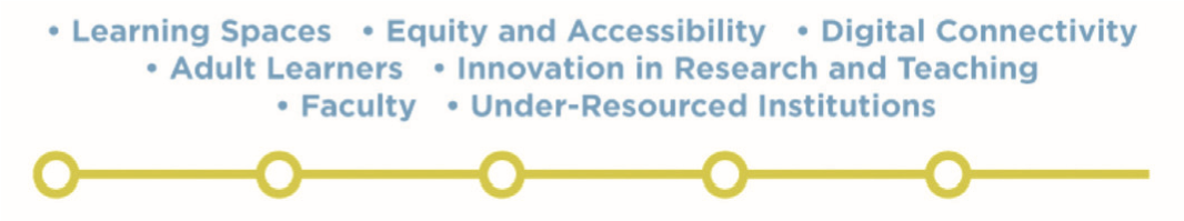 5.研究与教学中的创新(Innovation in Research and Teaching)。人工智能等技术的兴起和教学模式界限的模糊促使高等教育发生变革。疫情对传统教学方式造成了重大影响,高等教育正在寻求建立一种“新常态”,以满足学生的需求。高校领导者应该了解阻碍教学创新的痛点问题(如业务流程、基础设施建设等),采用灵活的教学方法,调整相关实践、政策和业务流程以支持教学变革。